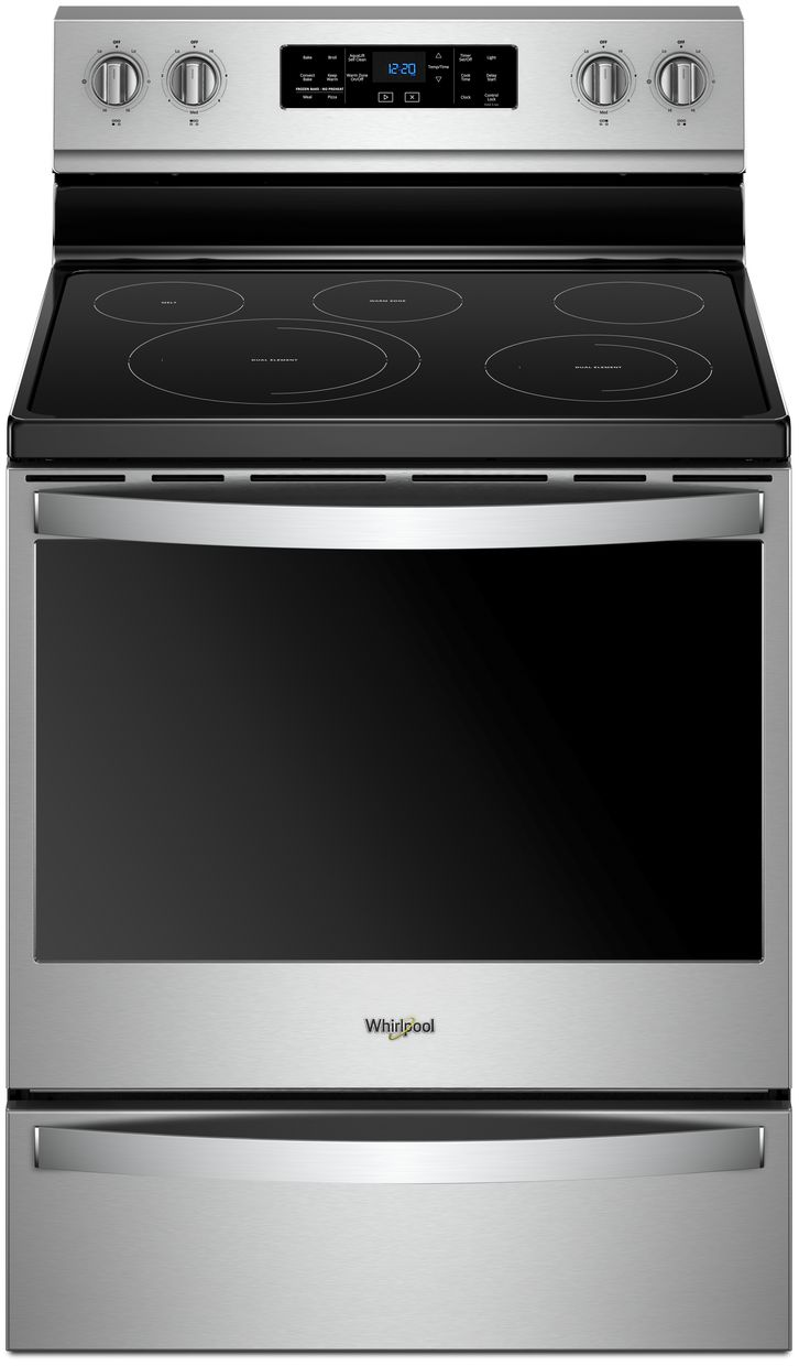 Get dinner to the table quickly with this freestanding electric range. Frozen Bake™ technology lets you skip preheating so you can cook frozen favorites in fewer steps. A self-cleaning oven also helps eliminate cold spots with fan convection cooking for baking on any rack.Read More