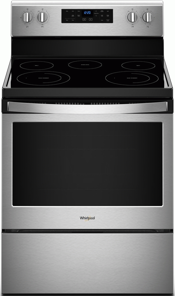 This Whirlpool® electric range helps you cook for the family, even on a hectic schedule. Skip preheating and cook frozen foods faster with Frozen Bake™ technology. FlexHeat™ dual radiant elements give you two elements in one for cooking flexibility on this self-cleaning stove. The ceramic glass cooktop on this Whirlpool® electric range with self-cleaning oven also makes cleanup quick.Read More
